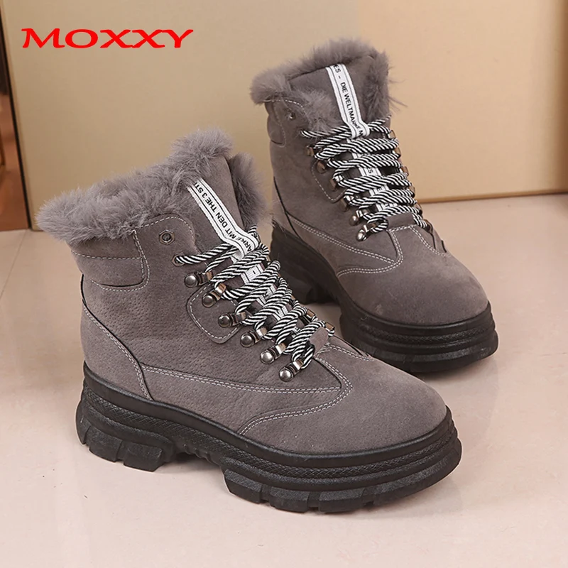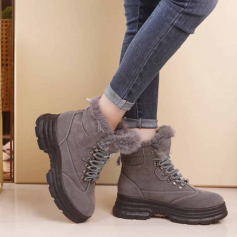 2019 New Retro Women's Winter Boots Women Snowboots Warm Fur Plush Lace Up Suede Comfort Platform Furry Boots Rubber Non-Slip :Click Here