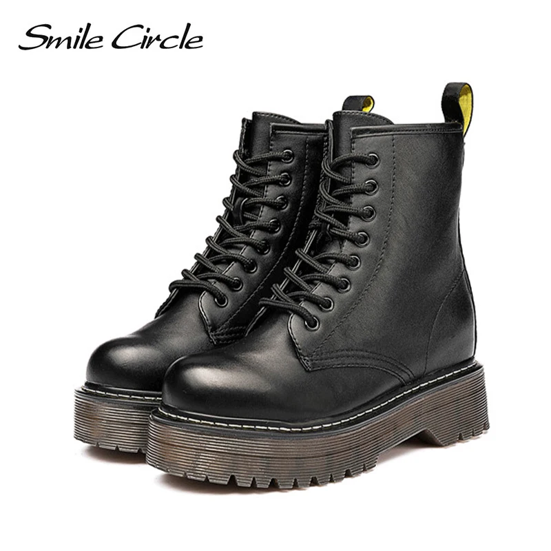 Smile Circle Size 35-42 Flat Platform Boots Women Shoes Autumn Winter Fur Fashion Round Toe Lace-up Leather Boots Ladies Shoes :Click Here
