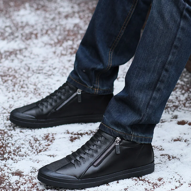 Big Sale JUNJARM Men Boots Warm Plush Mens Winter Shoes Fashion Men Snow Boots Zipper Male Ankle Boots Black