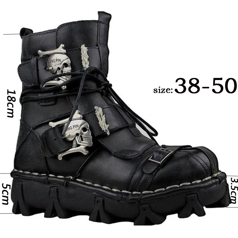 Trend Men's Cowhide Genuine Leather Leather boots men shoes Motorcycle Boots Military Combat Boots Gothic Skull Punk Boots