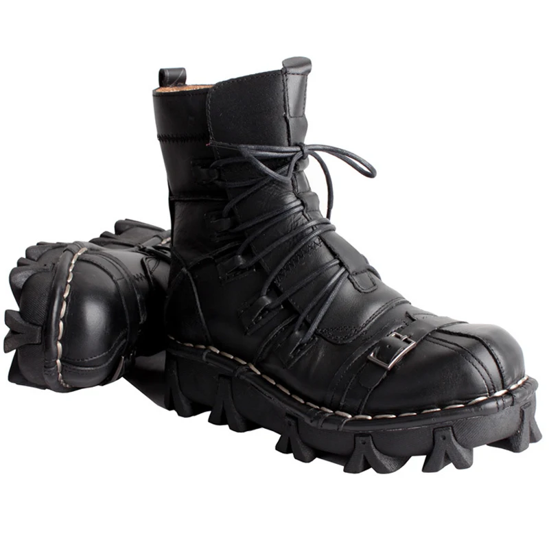 Latest Product Men's Cowhide Genuine Leather Leather boots men shoes Motorcycle Boots Military Combat Boots Gothic Skull Punk Boots