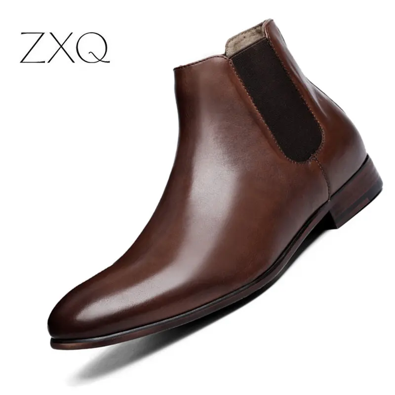 New Product Retro Brand Men Boots Genuine Leather Pointed Toe High Quality Men Dress Boots 2019 Ankle Chelsea Leather Boots