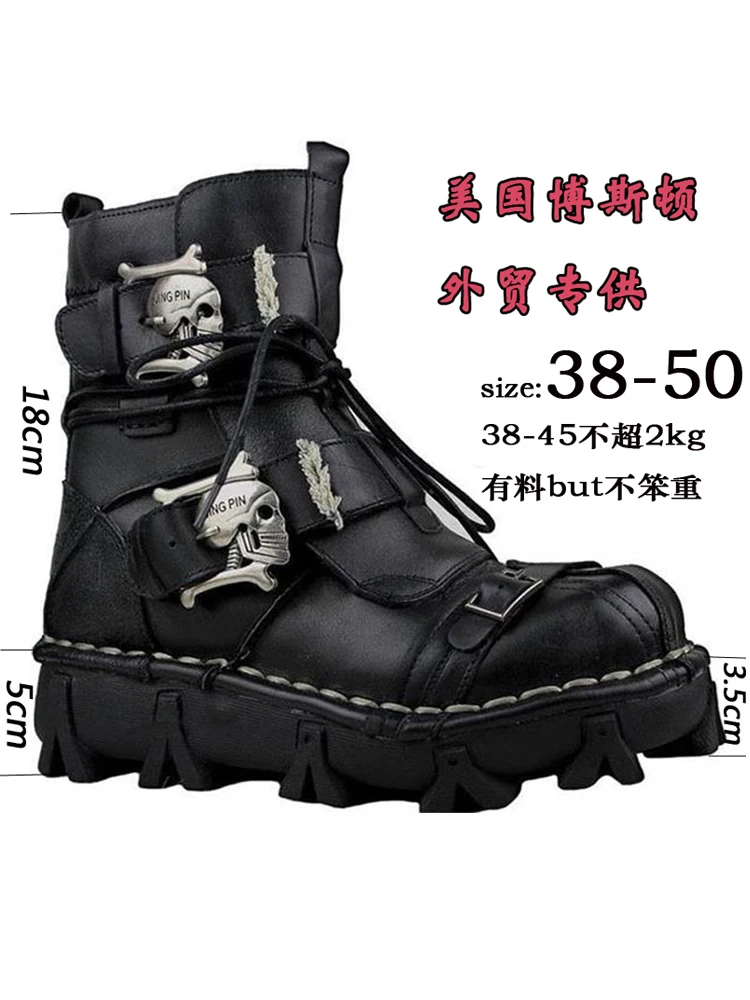 Popular Men's Cowhide Genuine Leather Motorcycle Boots Military Combat Boots Desert Ankle Boots Gothic Skull Punk Boots Martin Boots