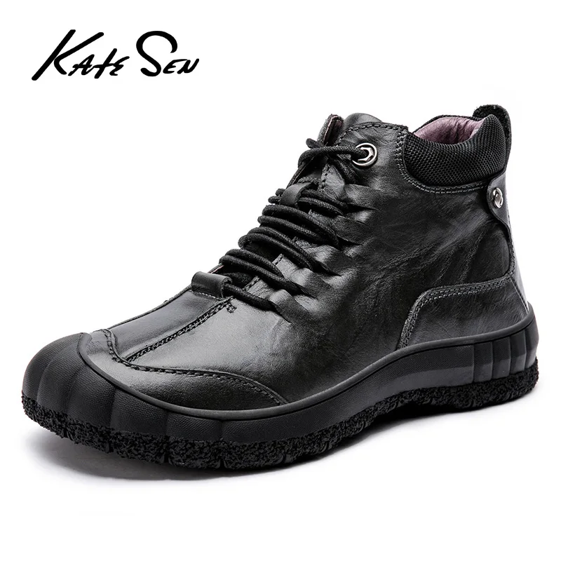 Goods Collection KATESEN New Genuine Leather Men Boot Fashion Man Winter Snow Boots keep Warm Boots Plush Ankle Snow Work Shoes Men's Snow Boots